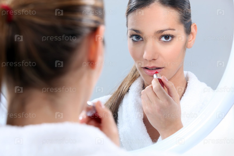 Молодая женщина наносит помаду