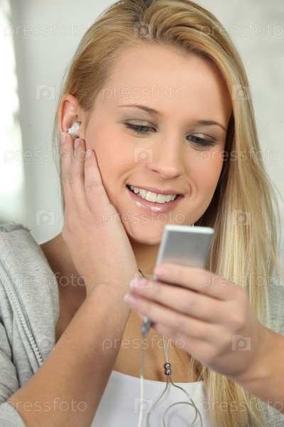 Блондинка слушает музыку