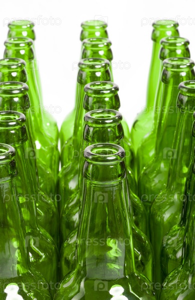 Пустые стеклянные бутылки на белом фоне