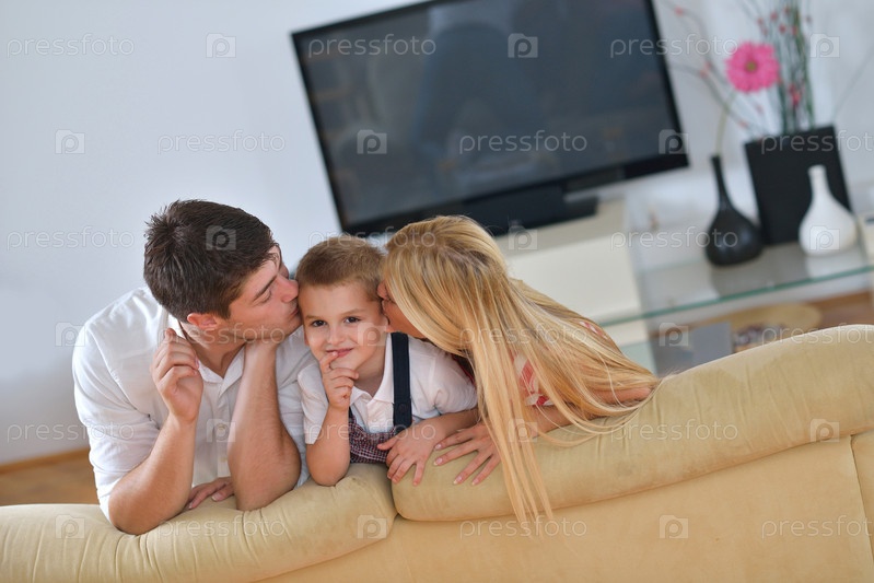 Семья отдыхает дома