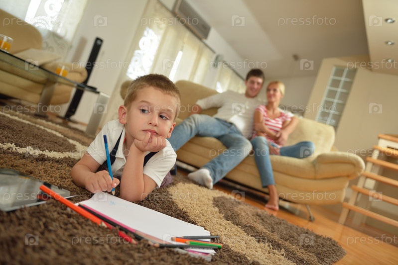 Семья отдыхает дома