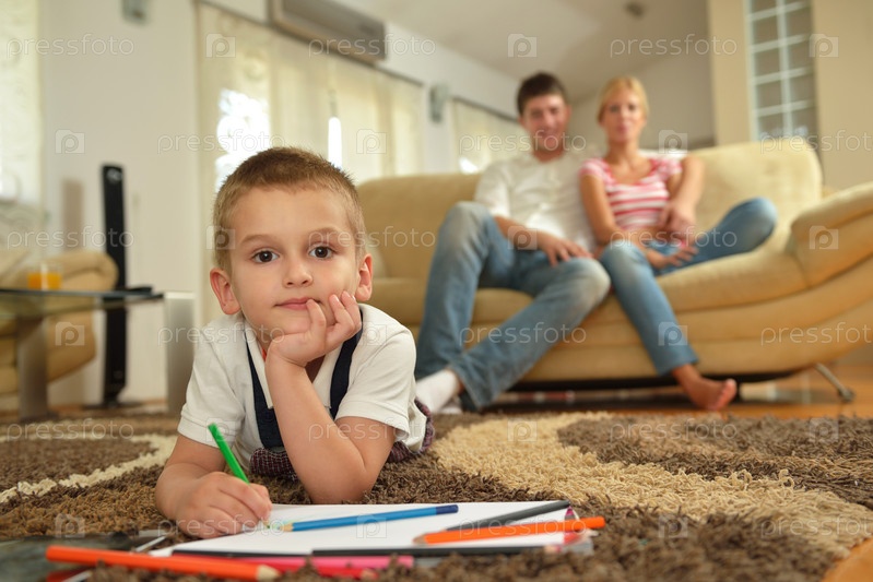 Семья отдыхает дома