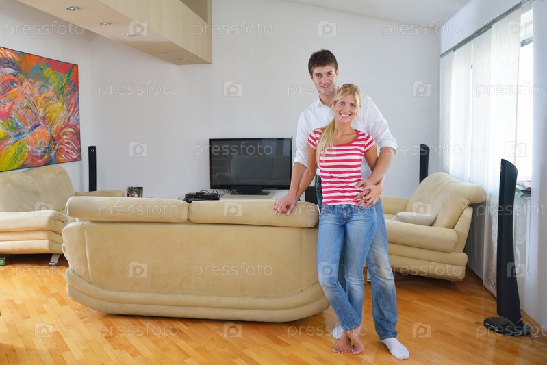 Молодая пара дома на диване