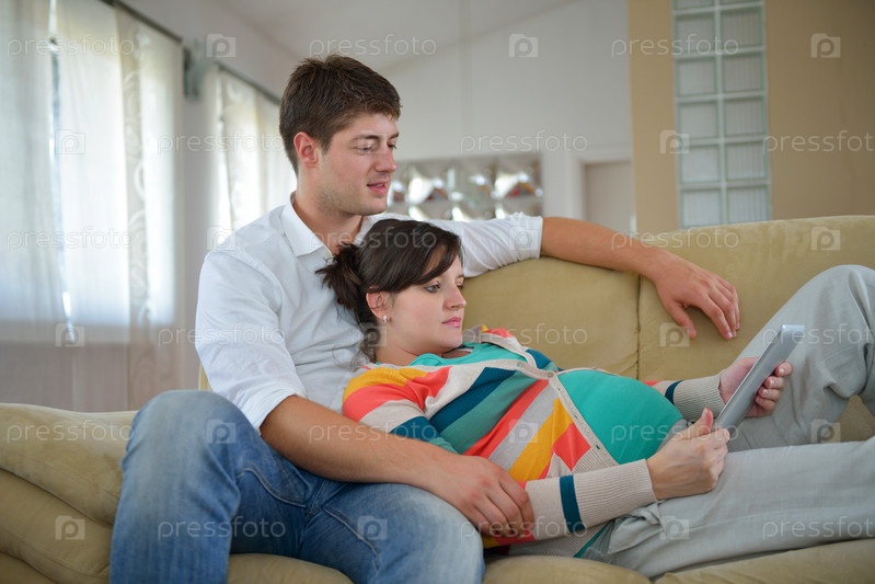 Беременная женщина с мужем на диване