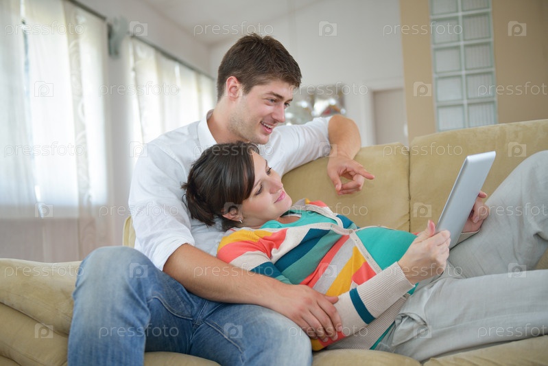 Беременная женщина с мужем на диване