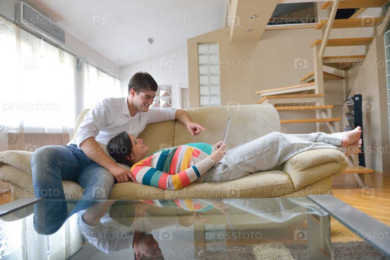 Беременная женщина с мужем на диване