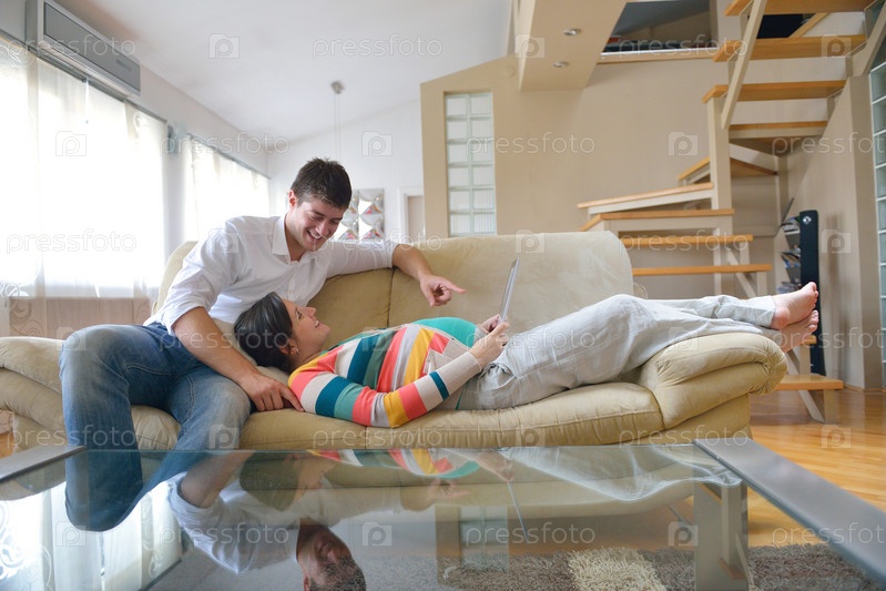 Беременная женщина с мужем на диване