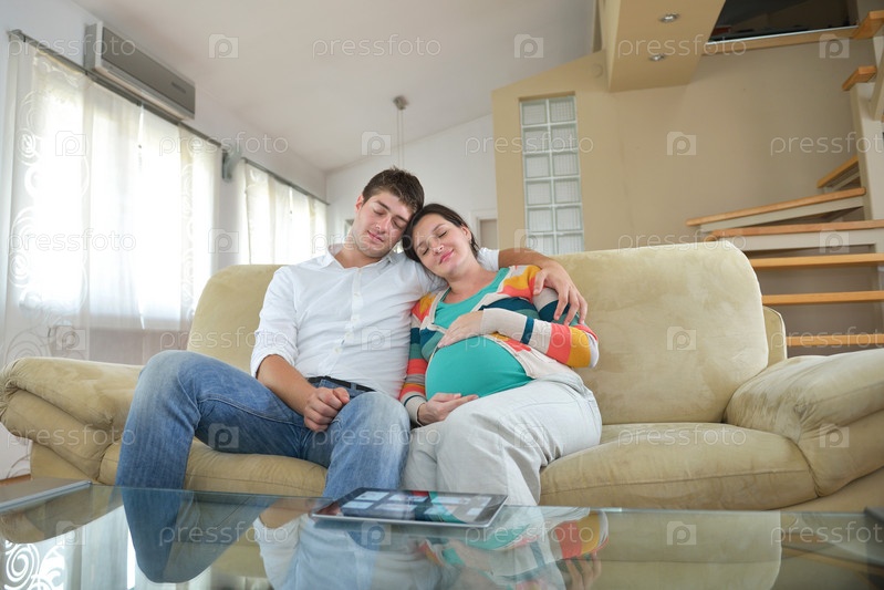 Беременная женщина с мужем на диване