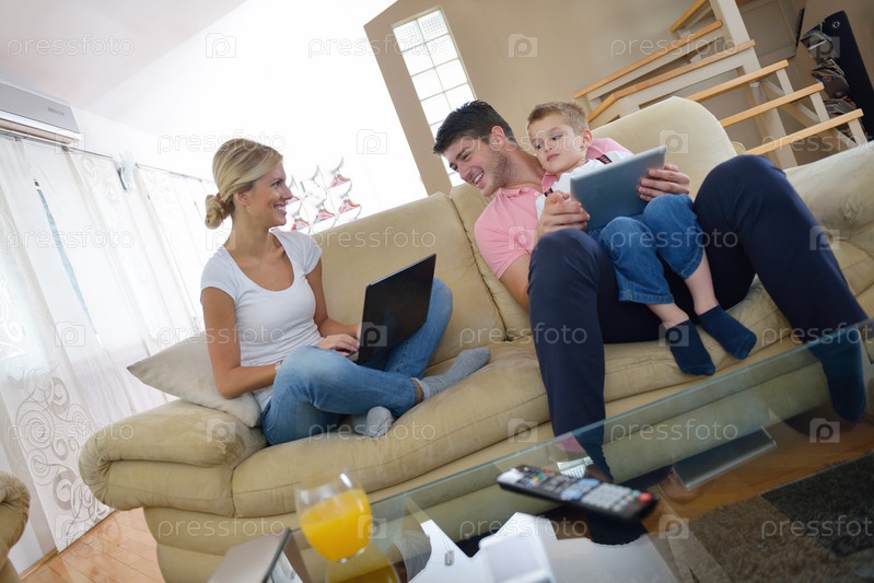 Семья отдыхает дома