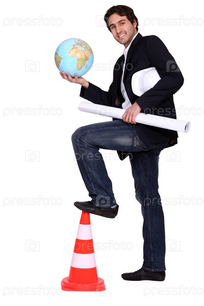 Человек, держащий глобус и план