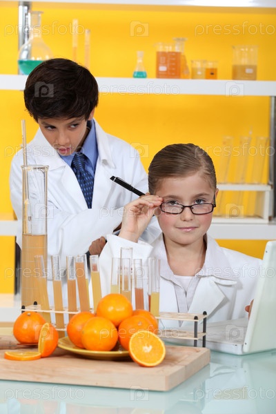 Двое детей в научной лаборатории