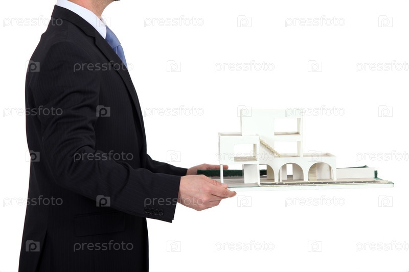 Человек с моделью здания