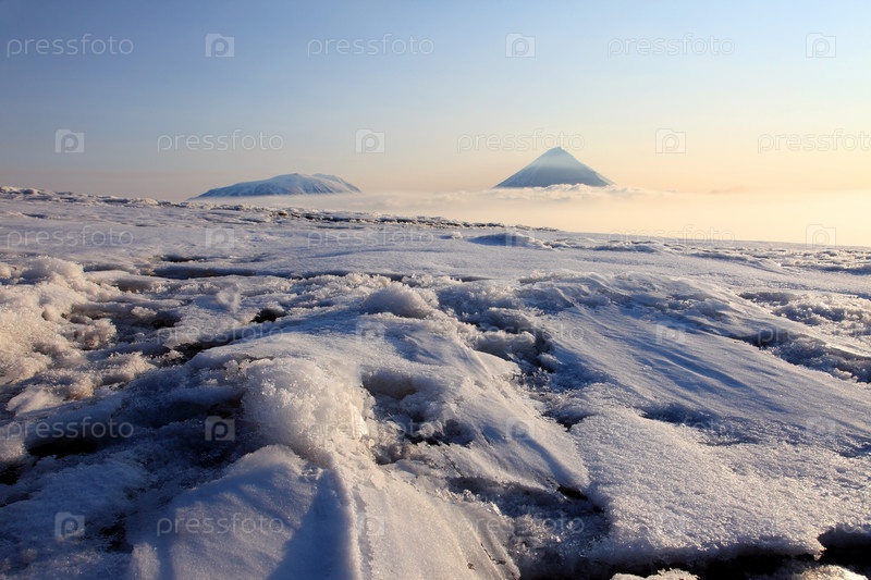 Вид на сопку Плоская Дальняя и Ключевую с вершины вулкана Плоский Толбачик. Камчатка. Россия