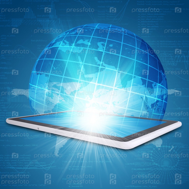 Планшет, глобус и графики
