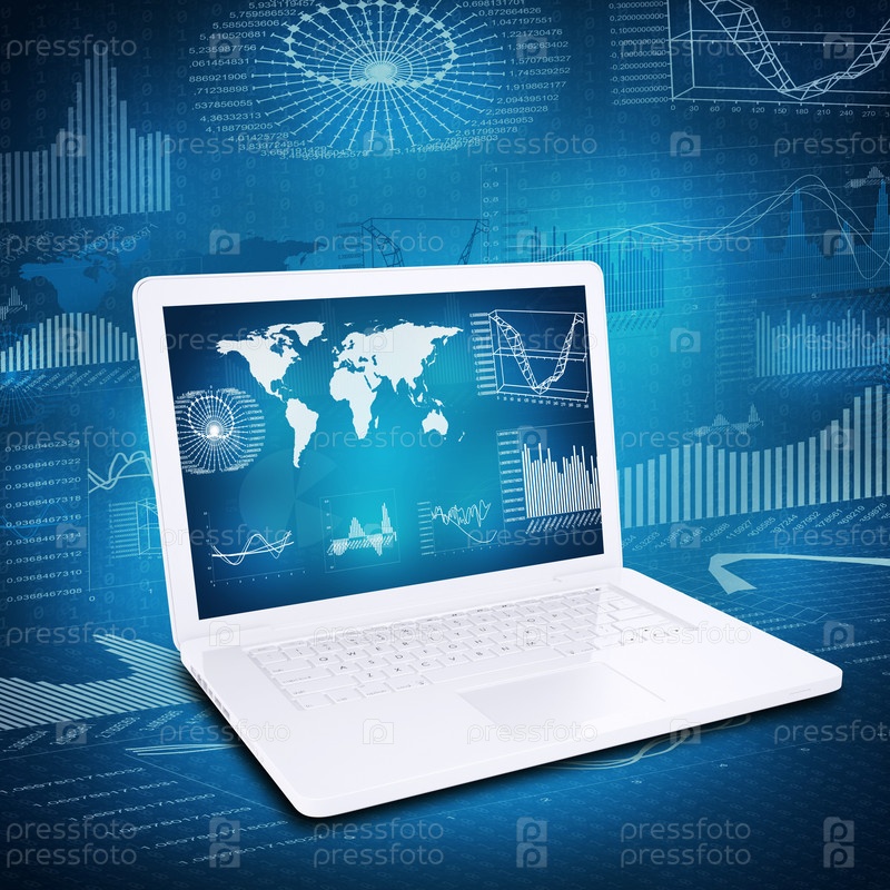 Ноутбук, карта и графики