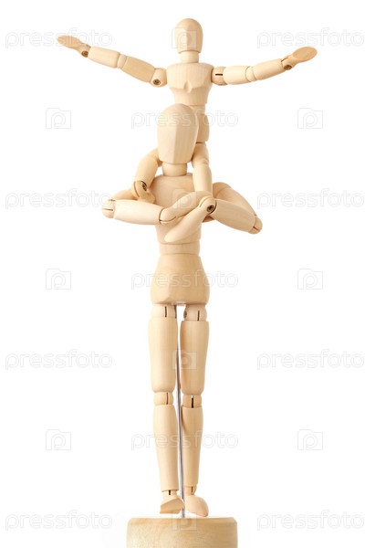 Деревянные фигурки ребенка и взрослого на белом фоне