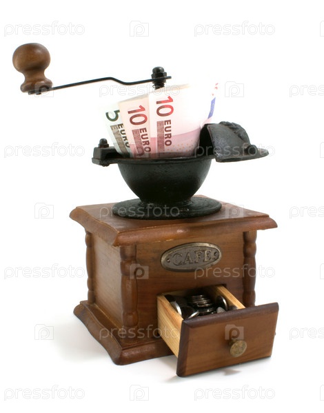 Ручная мельница измельчает деньги и получает монеты