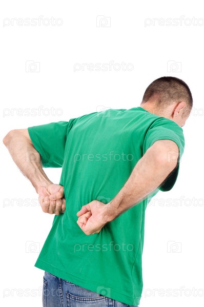 Человек, страдающий от боли в спине, изолированный на белом фоне