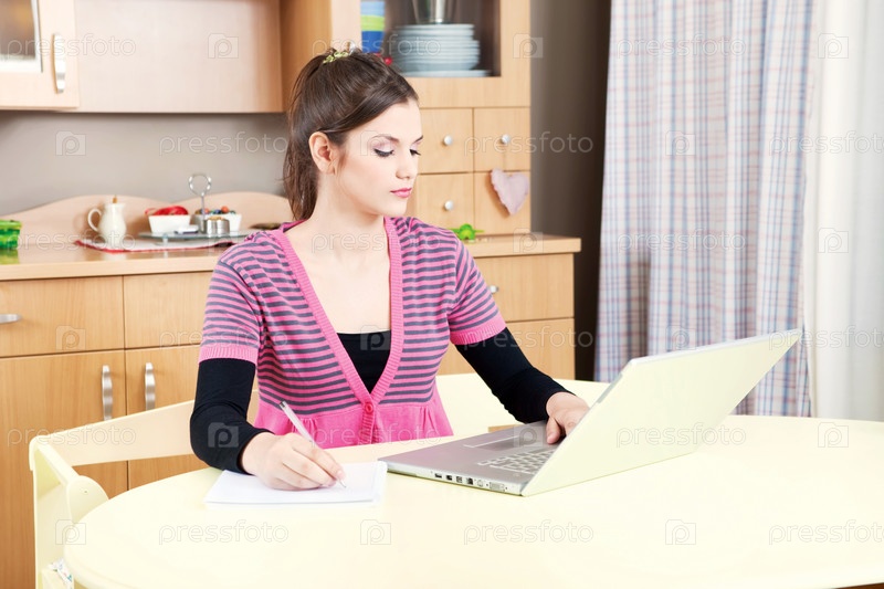 Красивая девушка обучается на дому