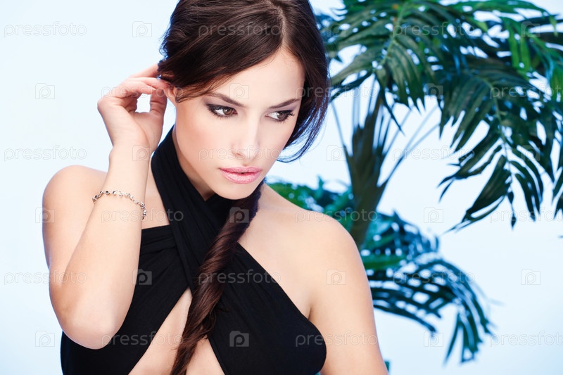 Красивая женщина на фоне пальмы