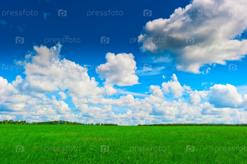 Сочно-зеленое пастбище и красивое небо