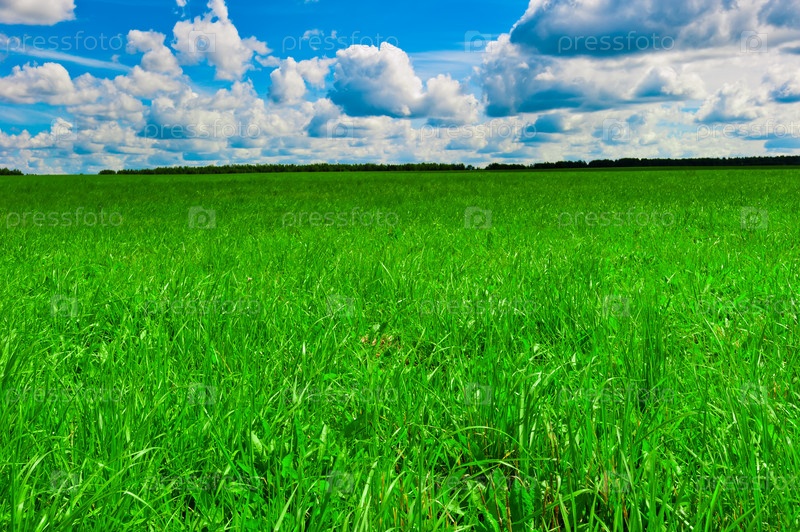 Сочно-зеленое пастбище и красивое небо