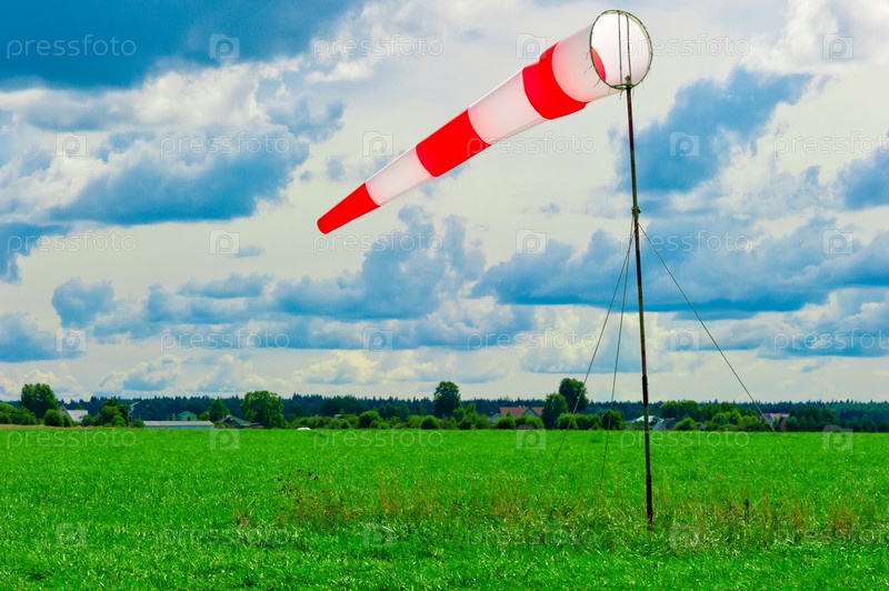 Полосатый ветроуказатель на зеленом поле