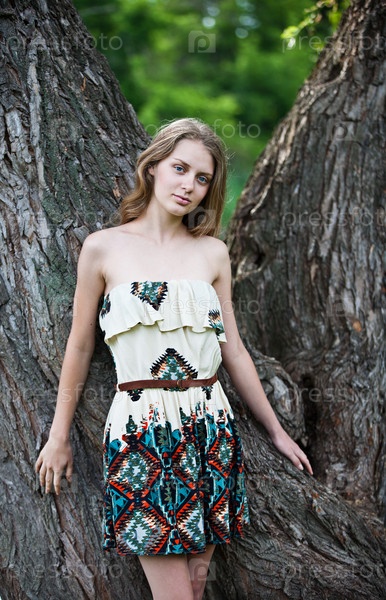 Красивая девушка у большого дерева