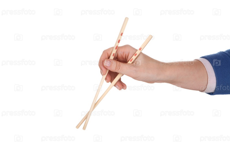 Женская рука с палочками с китайской надписью
