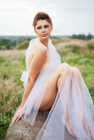 Красивая девушка в тюле на камне