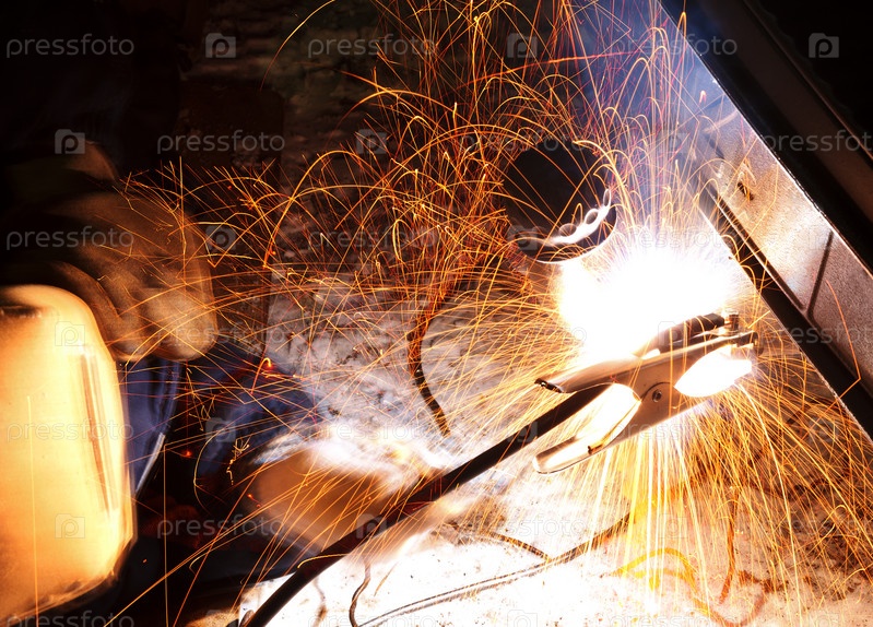 Искры во время сварки автомобиля