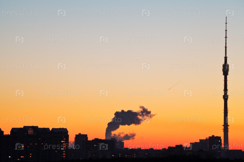 Телевизионная башня и оранжевый рассвет в Москве