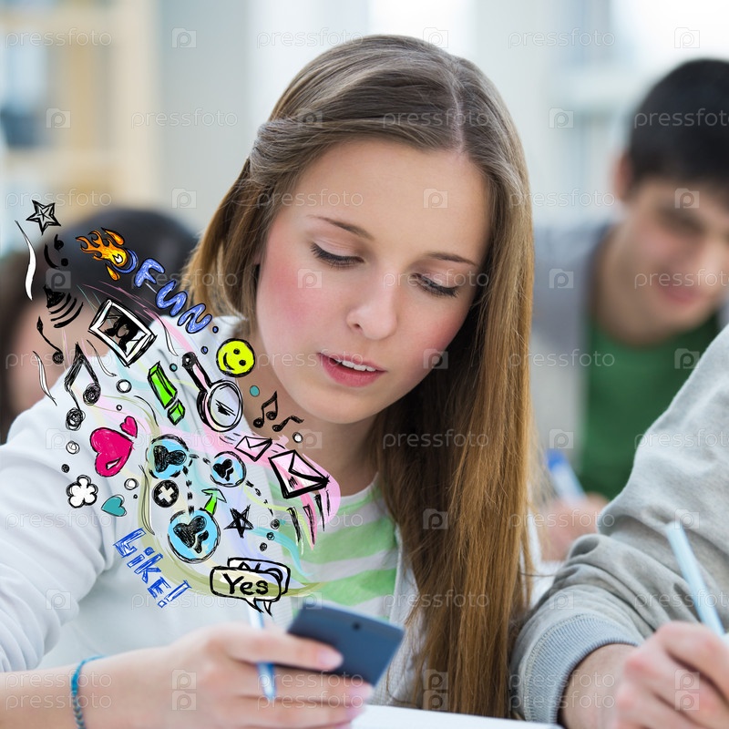Бизнес-леди использует мобильные технологии для связи