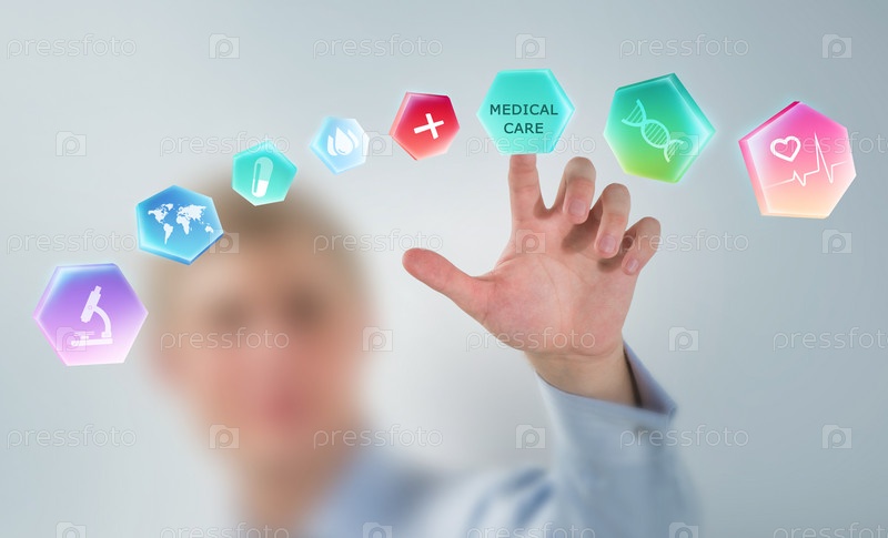 Доктор касается медицинских иконок