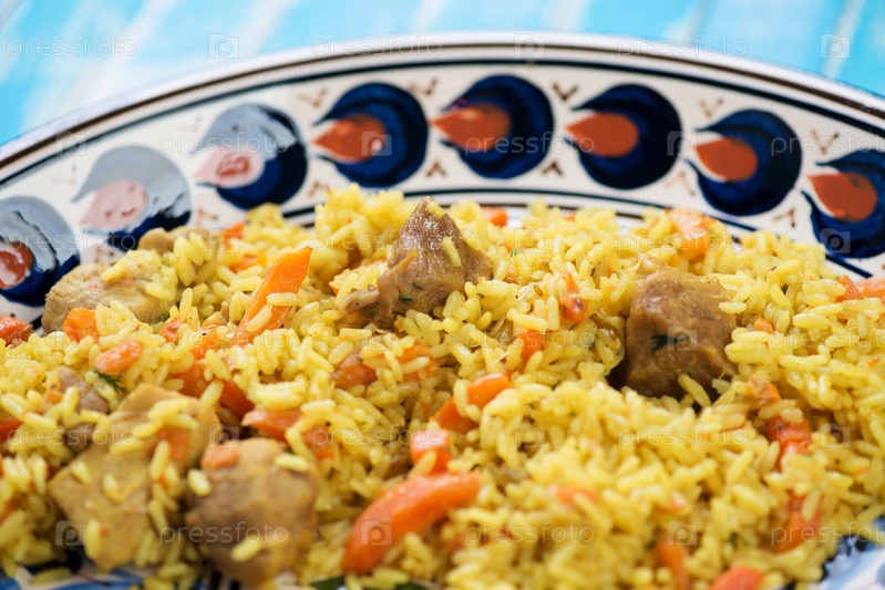 Традиционный узбекский плов в тарелке