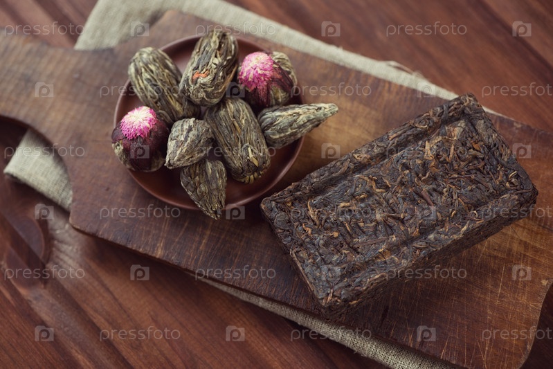 Прессованный чай на деревянном фоне