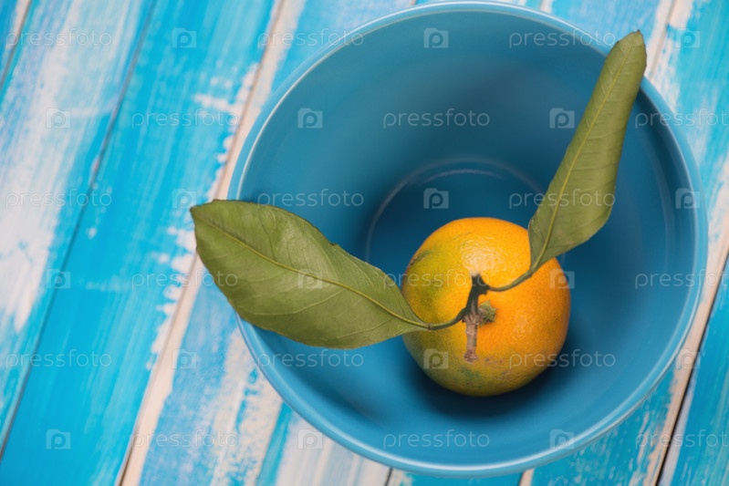 Спелый мандарин с зелеными листьями