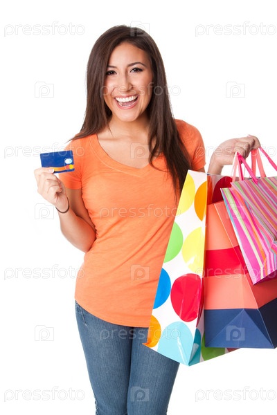 Счастливая молодая женщина с покупками