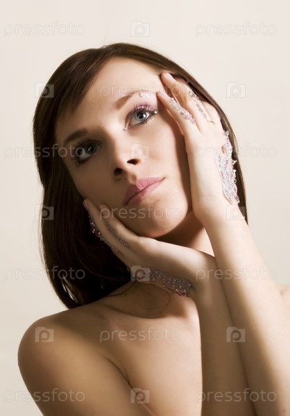 Девушка с украшением из стразов