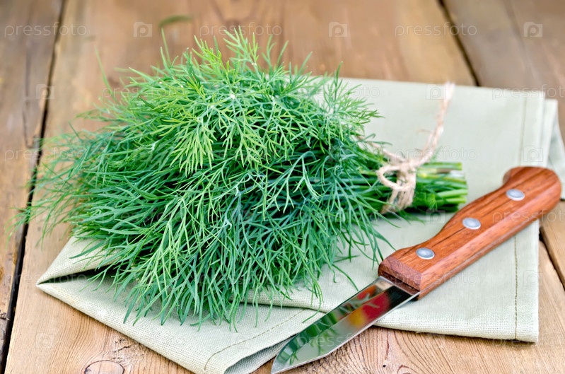 Укроп с ножом и салфеткой на доске