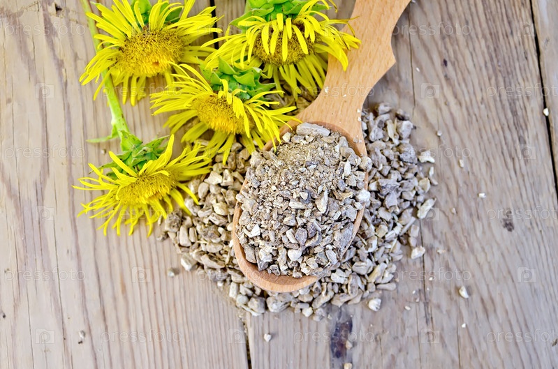 Травяной чай из корня девясила на ложке