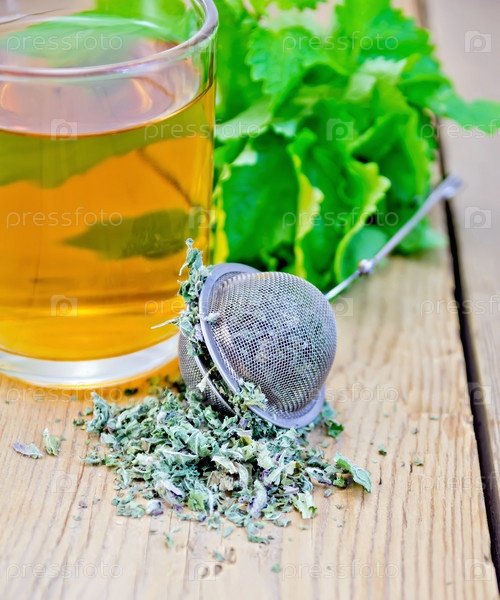 Травяной чай с мятой в чашке с ситечком