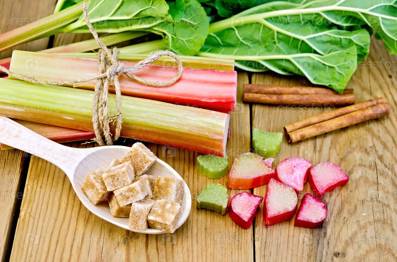 Ревень с сахаром и корицей на доске