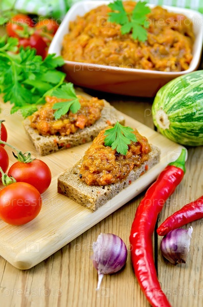 Бутерброд с кабачковой икрой и петрушкой на доске