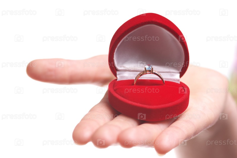 Коробочка в форме сердца с обручальным кольцом на ладони