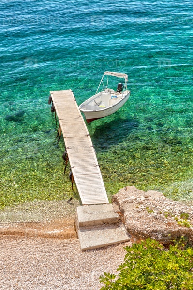 Пустая лодка у деревянного пирса