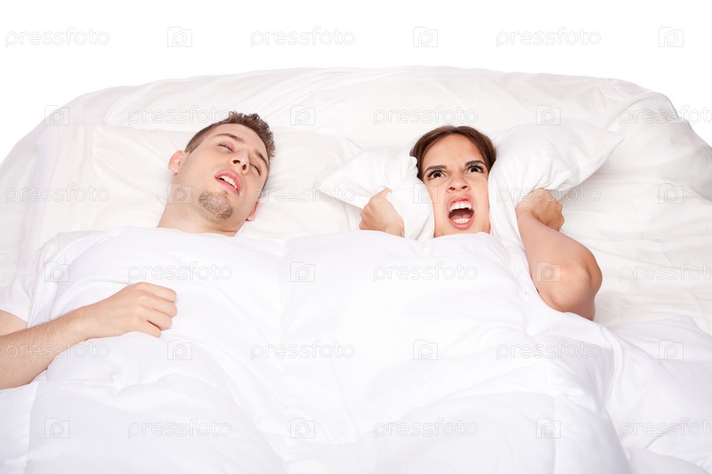 Храпящий спящий мужчина и злая женщина
