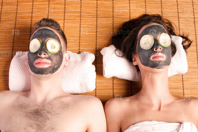 Пара в спа с масками на лицах