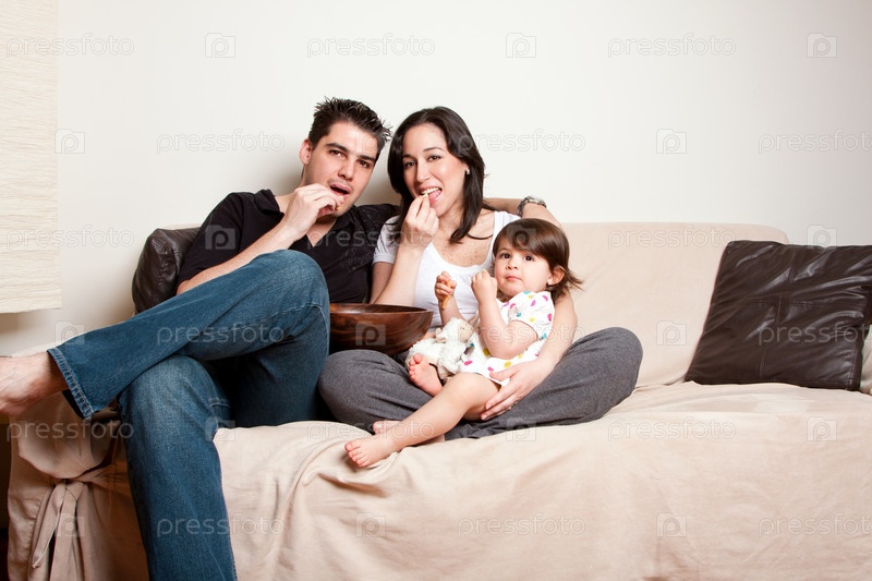 Счастливая семья на диване