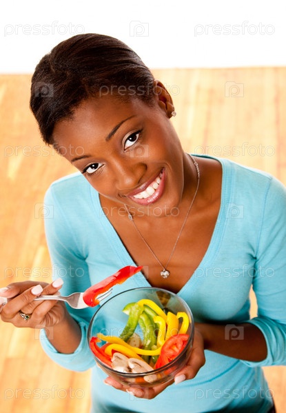 Поклонница здорового питания ест салат